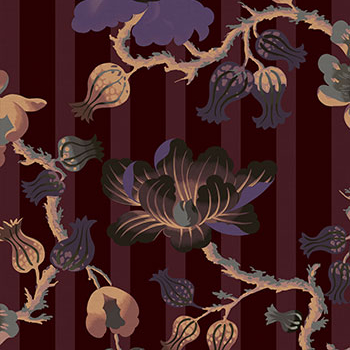 A sensory immersion in organic and plant motifs. Enter an underwater world filled with colors and details, in which the graphic shapes of plants seem to undulate along the water. Discover