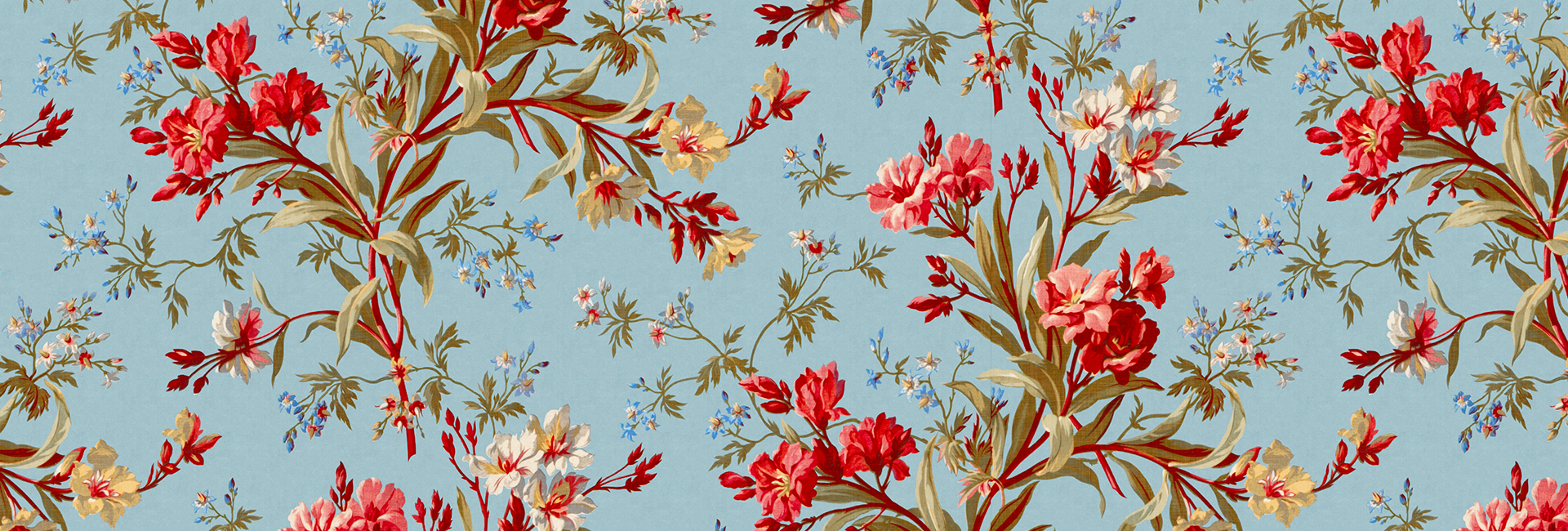 Les Lauriers roses illustrent parfaitement cette tendance, avec sa fraîche floraison d’espèces champêtres aux motifs grimpants. Cette archive, belle endormie réveillée par nos ateliers, est issue de la maison Frères Zürcher. Elle vient ajouter sa délicatesse à celle des nombreuses fleurs qui parsèment nos collections, reflets de notre patiente collecte des motifs emblématiques  de l’histoire textile.